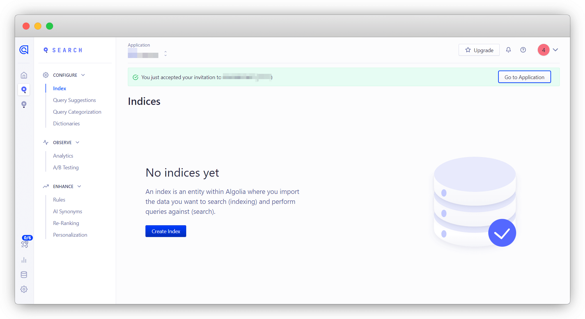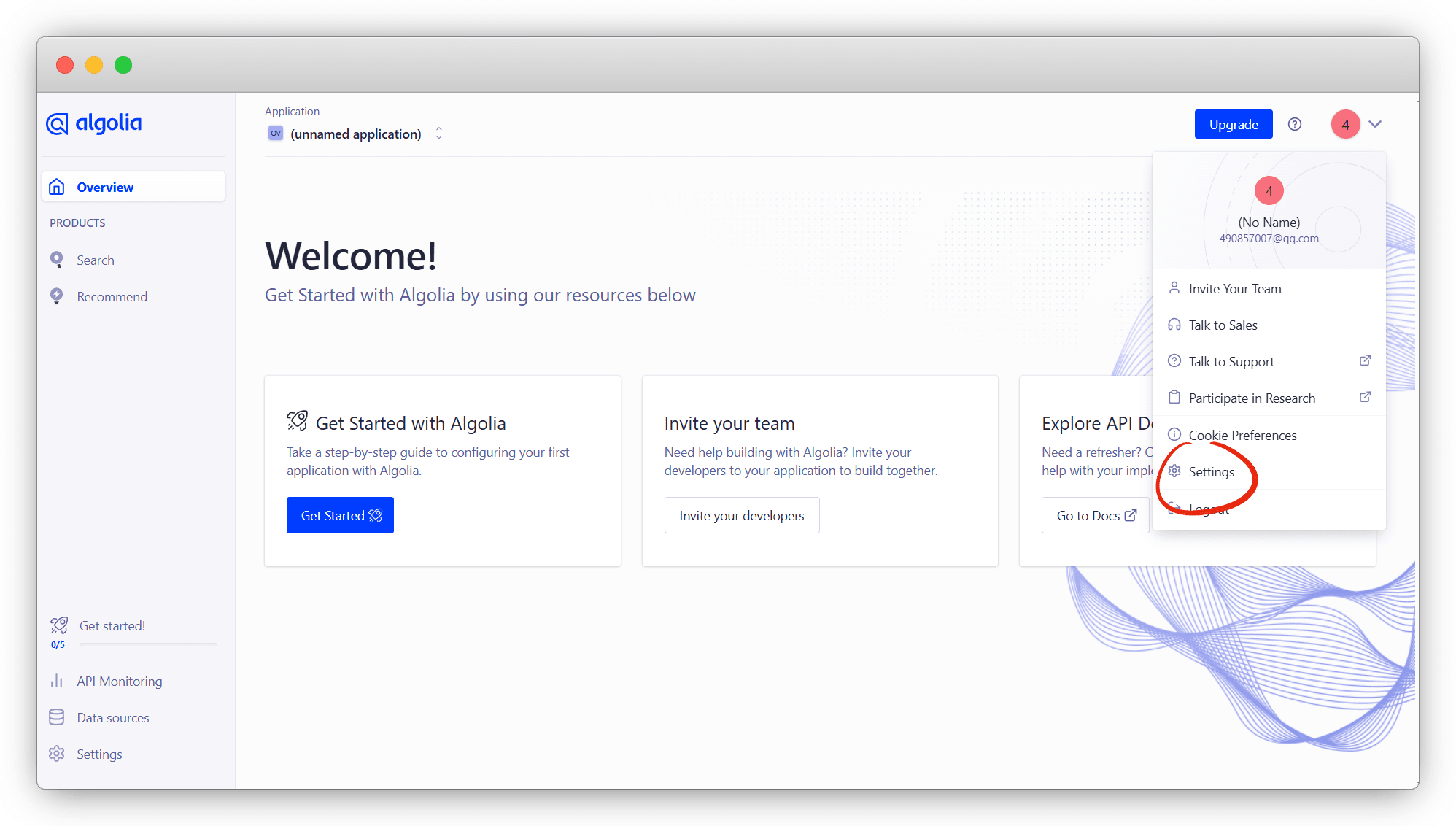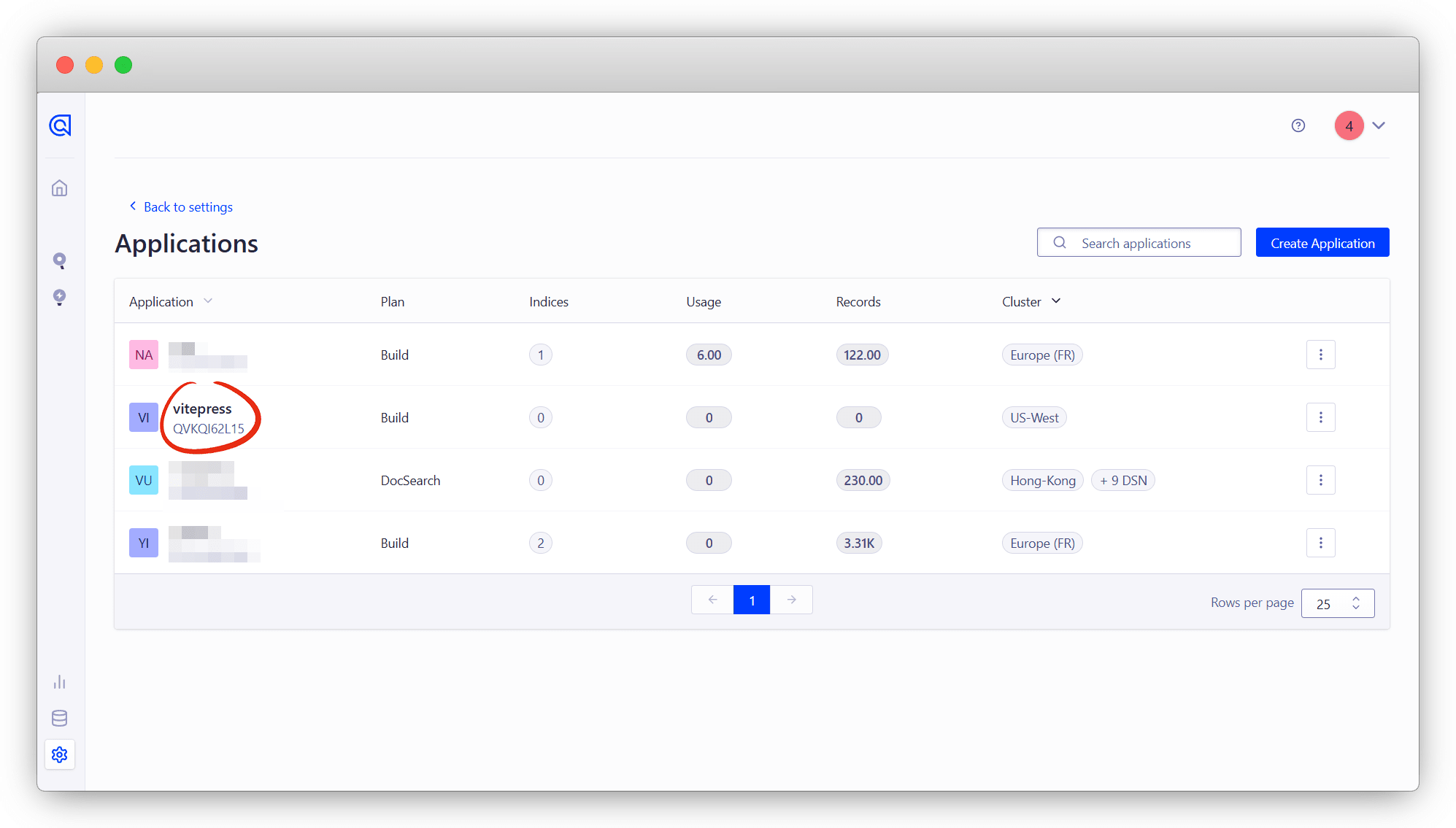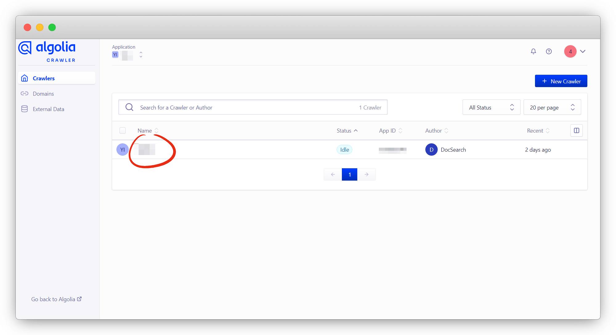 需要登录 Algolia官方爬虫后台 进行调试,点击官方帮我们申请的Application