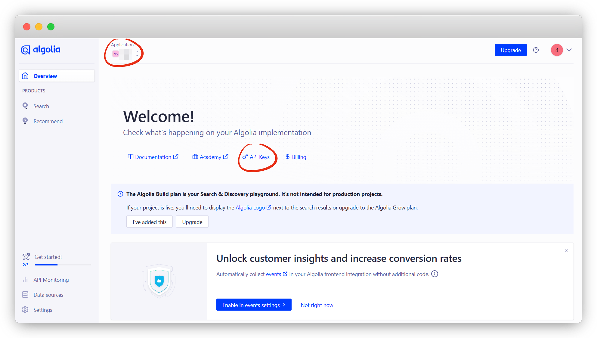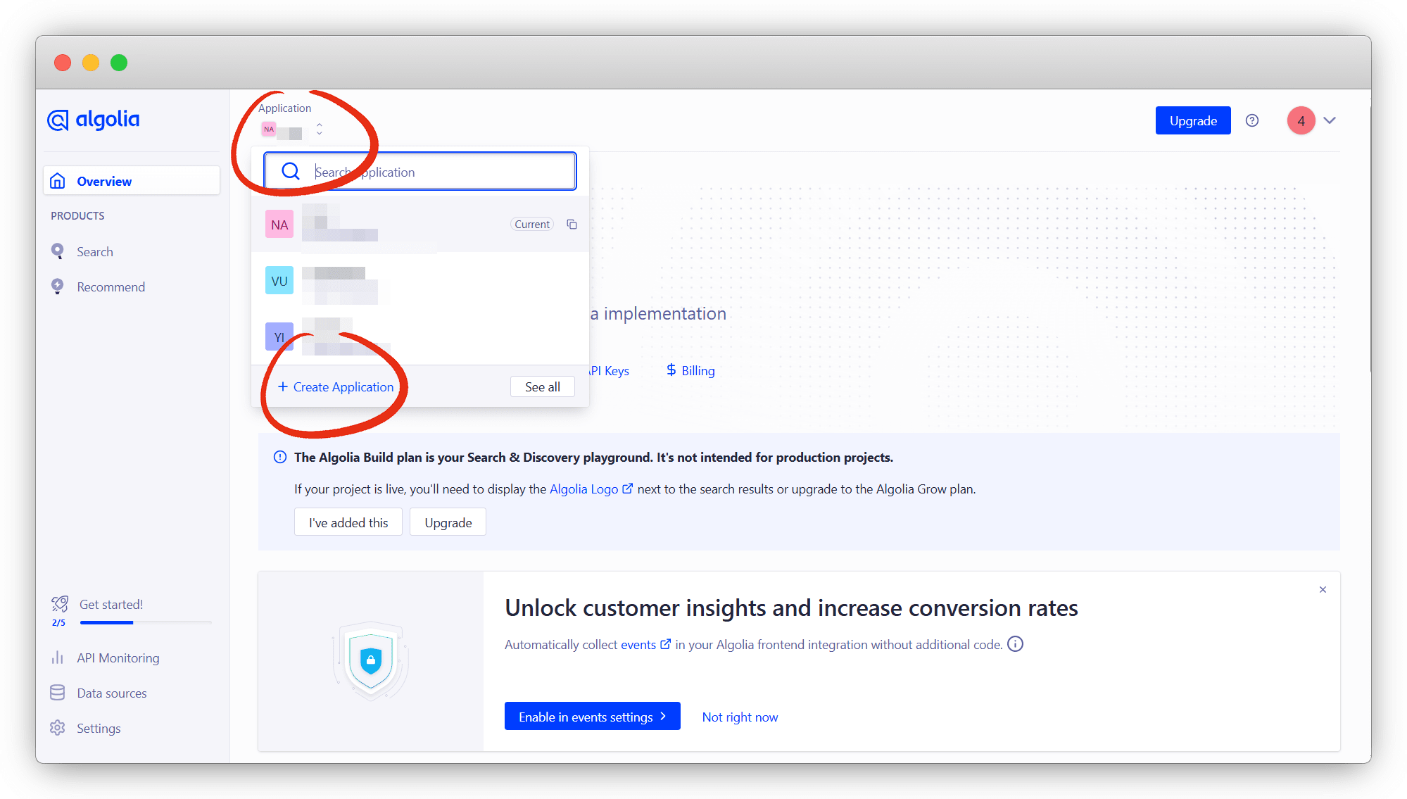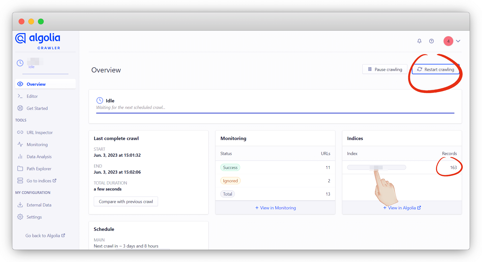 需要登录 Algolia官方爬虫后台 进行调试,点击官方帮我们申请的Application