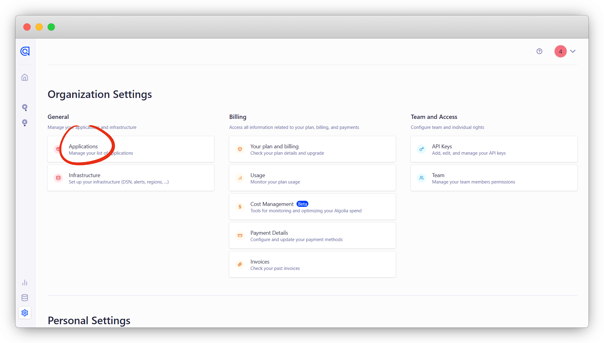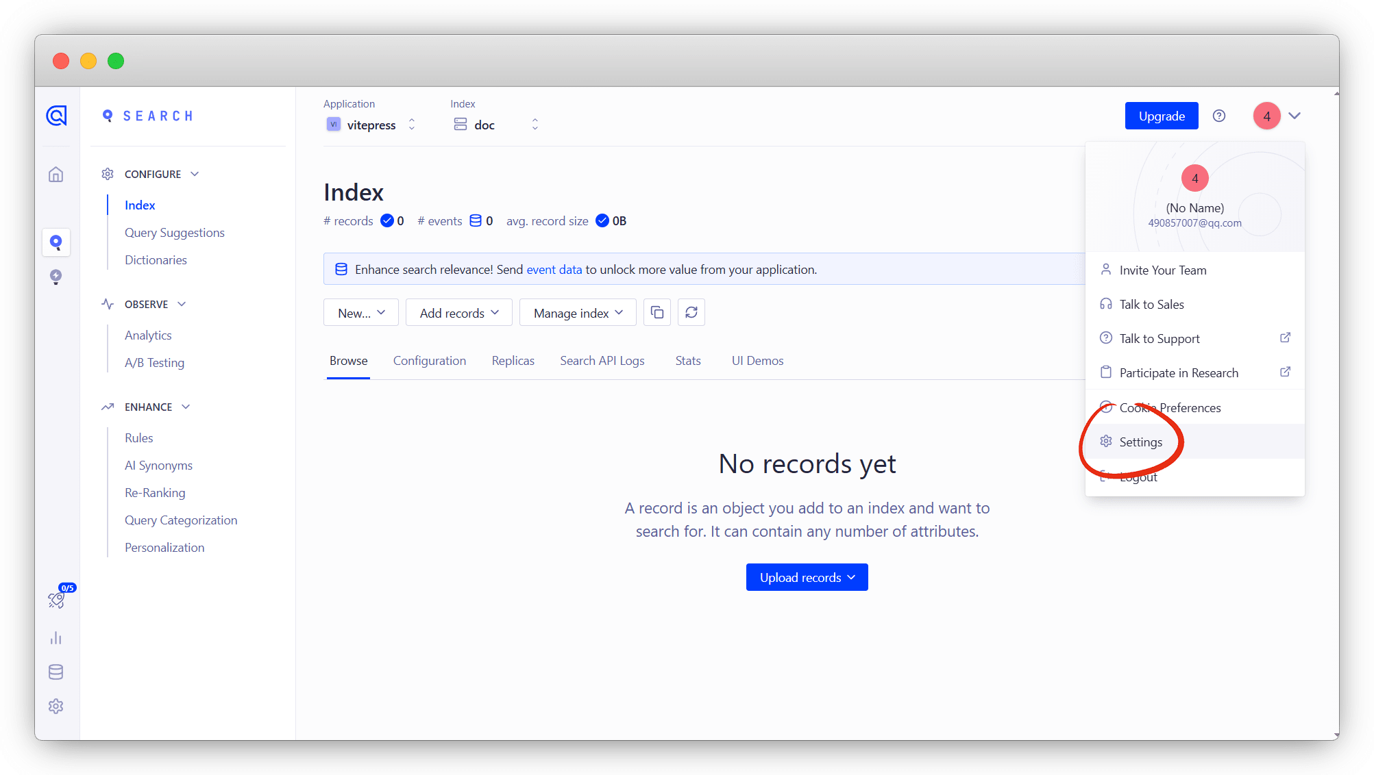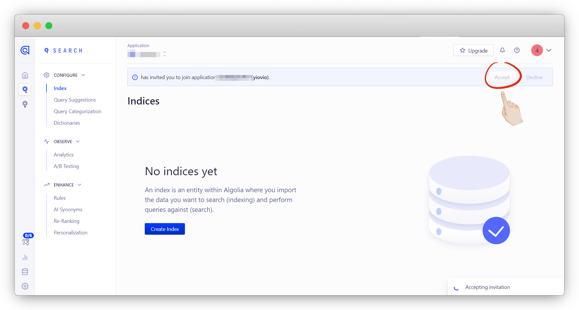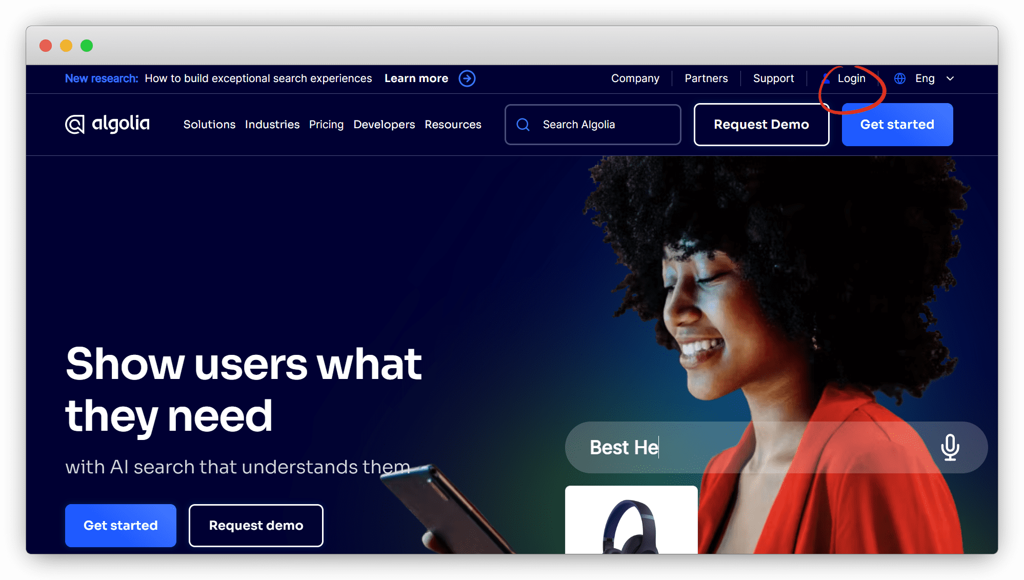 需要登录 Algolia官方爬虫后台 进行调试,点击官方帮我们申请的Application