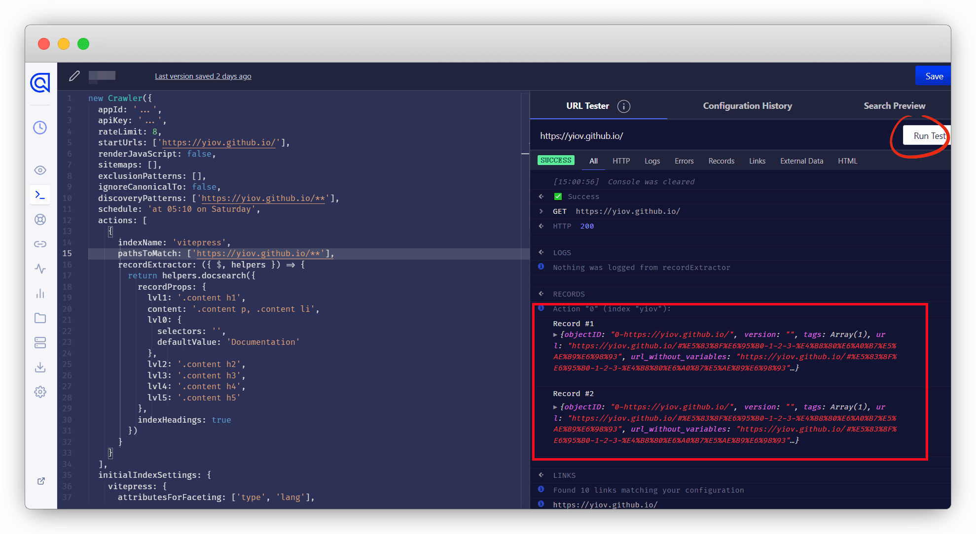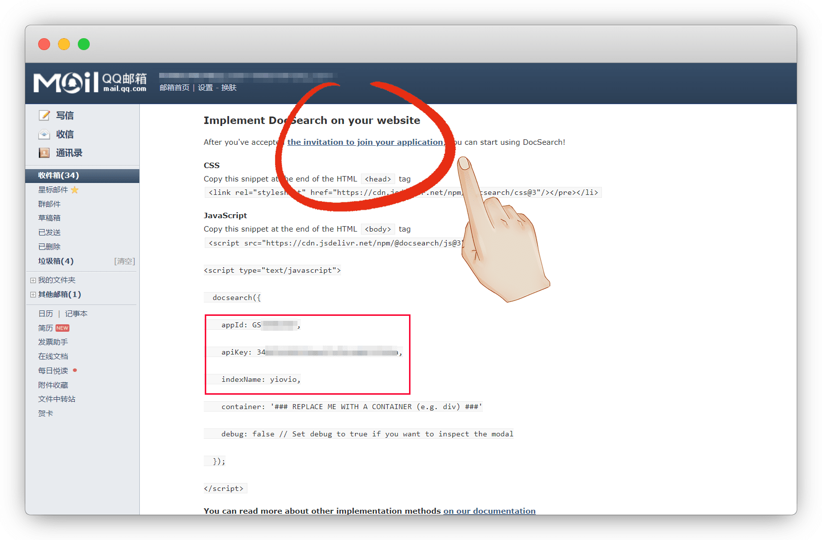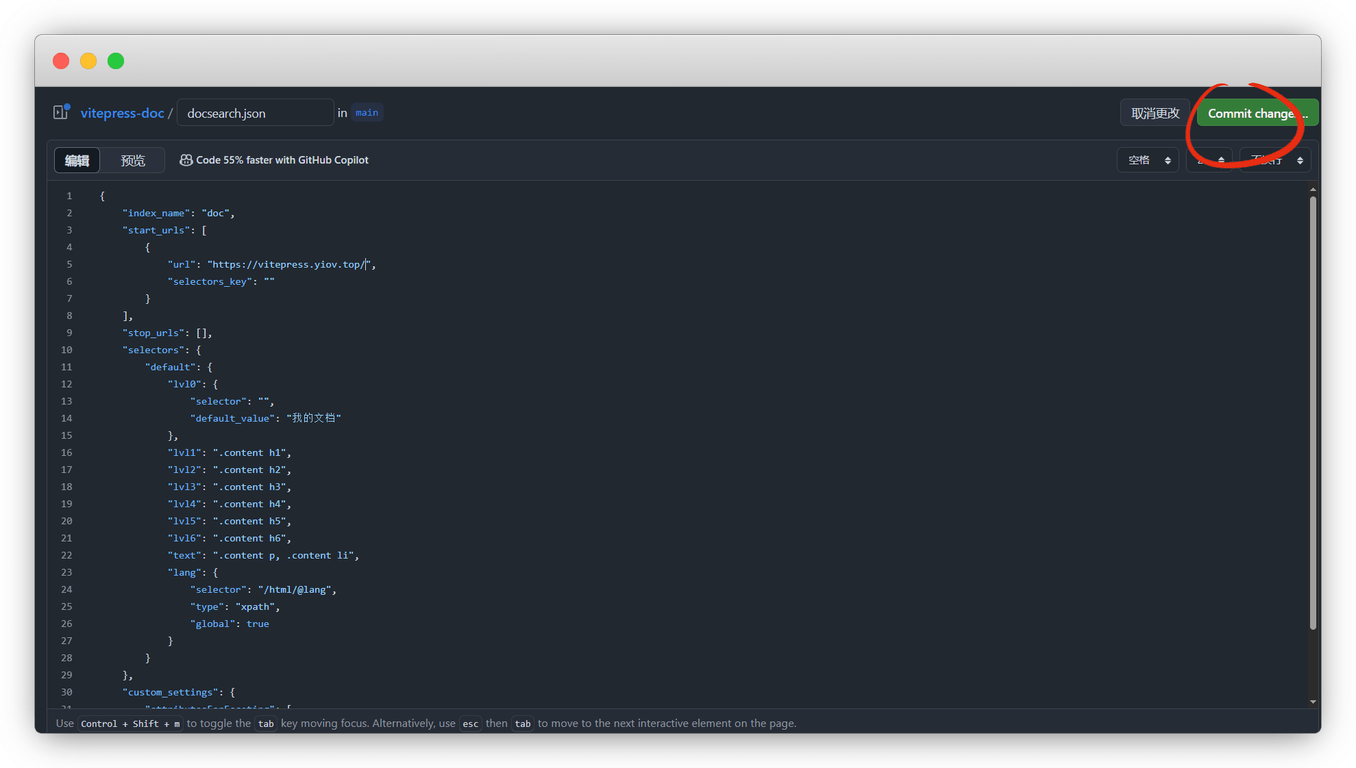 命名为 docsearch.json ,格式如下,按需修改其他不要动